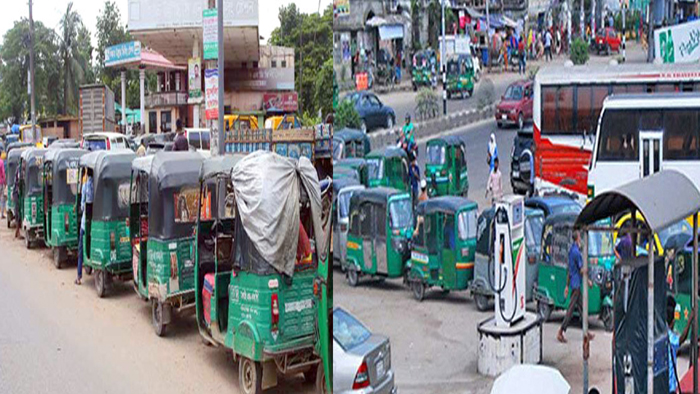 সিলেটের সিএনজি ফিলিং স্টেশন গুলোতে মাস শেষে তীব্র যানজট