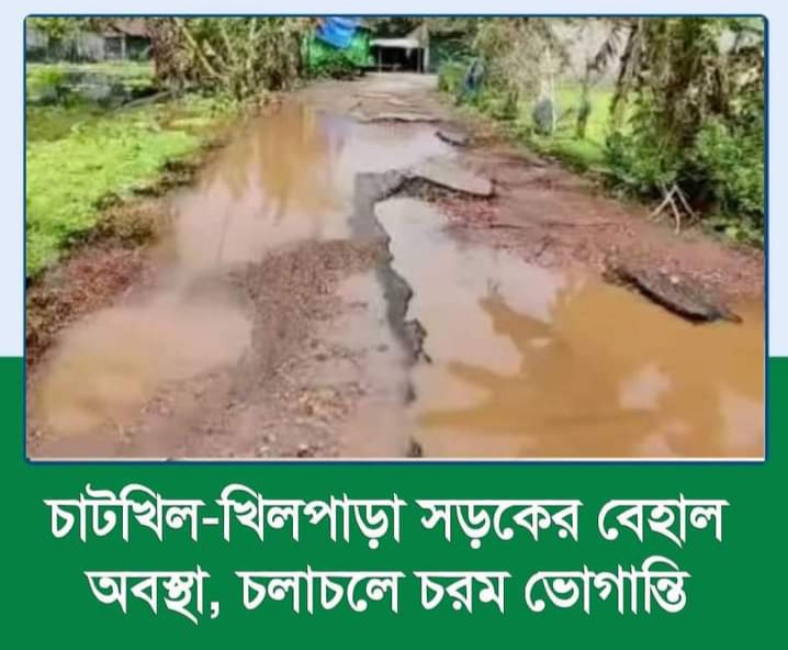 বন্যায় ক্ষতিগ্রস্ত চাটখিল খিলপাড়া সড়কের বেহাল অবস্থা