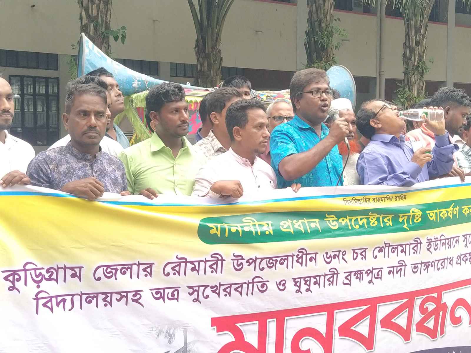 কুড়িগ্রামে ব্রহ্মপুত্রের ভাঙ্গনরোধে ব্যবস্থা নেয়ার দাবিতে বিক্ষোভ