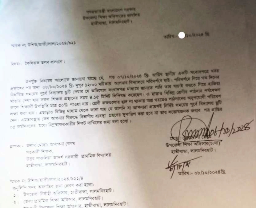 সংবাদ প্রকাশের পর প্রাথমিক বিদ্যালয়ের চার শিক্ষককে শোকজ