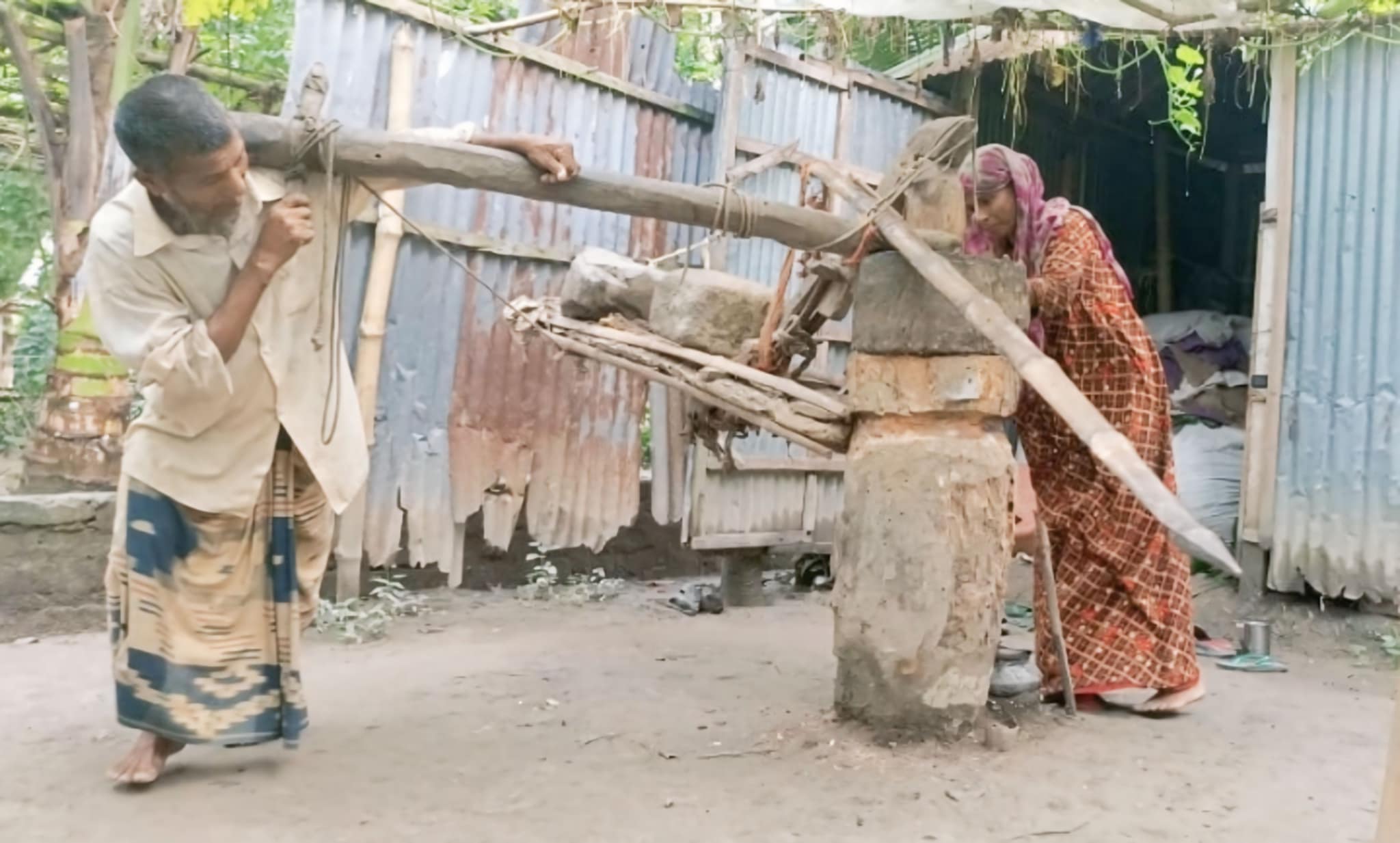 গরু কেনার সামর্থ্যনেই,নিজের কাঁধে টানেন ঘানির জোয়াল