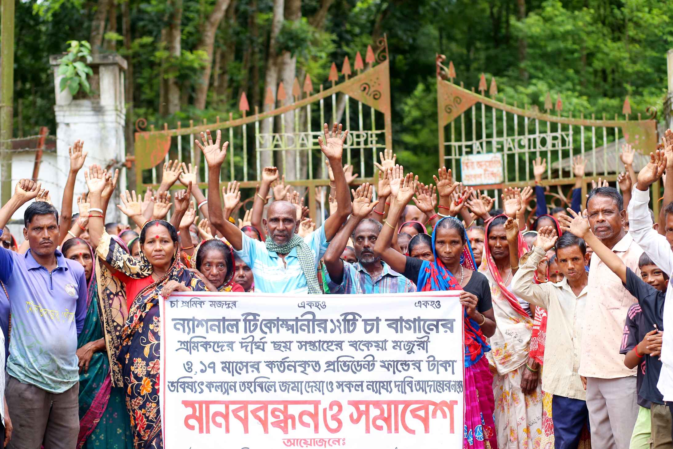 কমলগঞ্জে টানা তিন দিন ধরে কর্মবিরতিতে এনটিসির চা বাগানগুলোর শ্রমিকরা