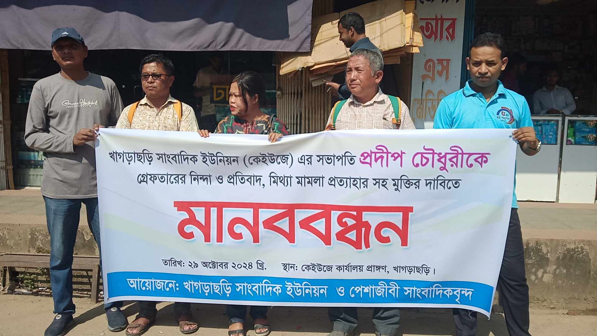 মিথ্যা মামলায় গ্রেপ্তারকৃত সাংবাদিক প্রদীপ চৌধুরীকে মুক্তির দাবিতে মানববন্ধন