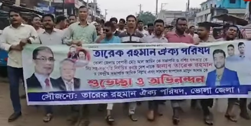 ভোলায় তারেক রহমান ঐক্য পরিষদের শুভেচ্ছা মিছিল