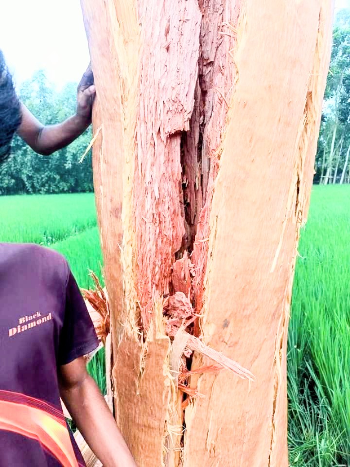 রাজারহাটে ইউক্লিপটাস গাছে বজ্রপাত