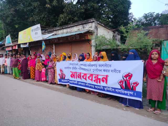 ময়মনসিংহ পূর্ণবাসনের দাবীতে নদীরপাড় ভূমিহীন পরিবারের মানববন্ধন