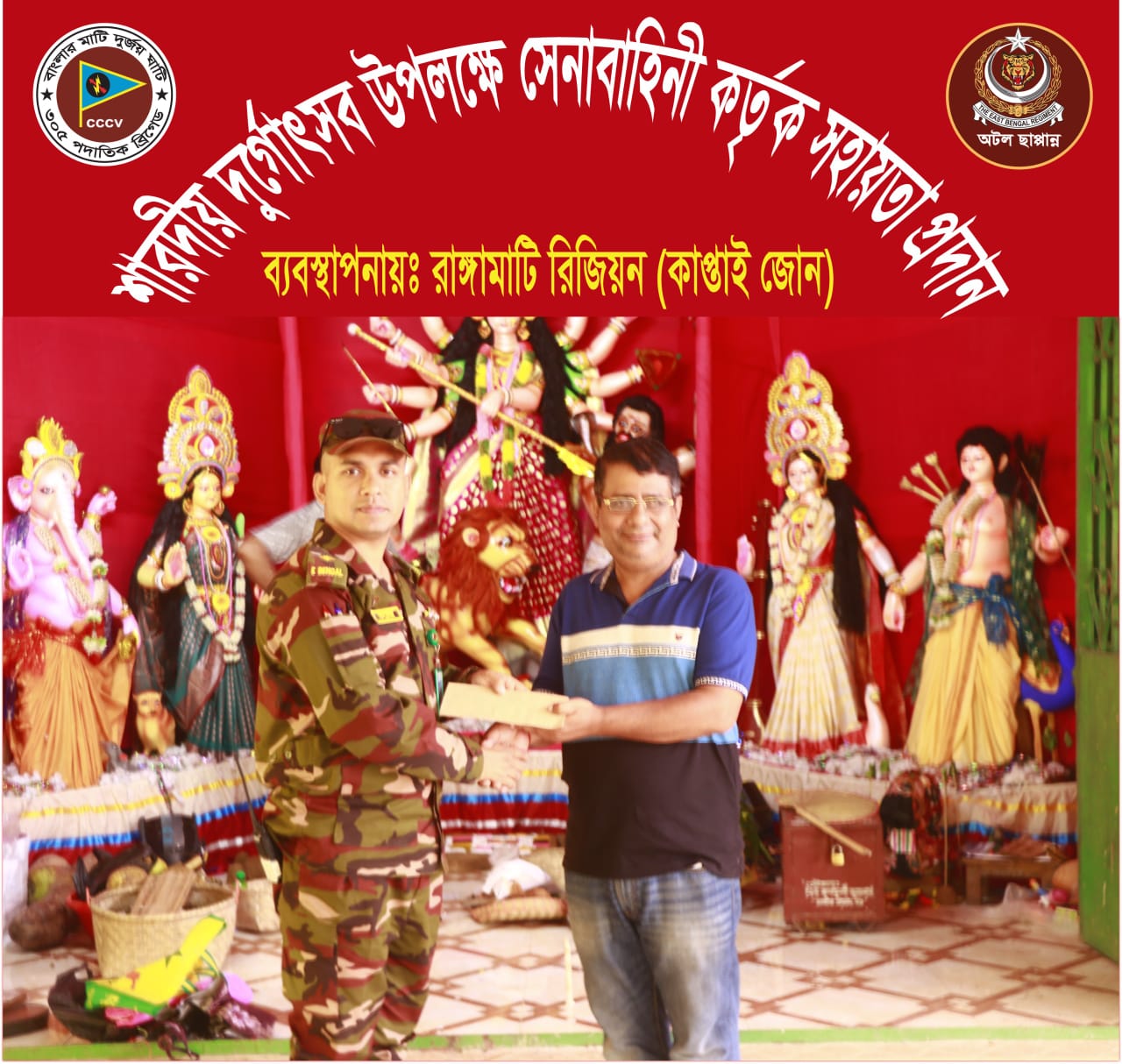 কাপ্তাই সেনা জোনর উদ্যোগে শারদীয় দূর্গ উৎসব এবং কবরস্থান সংস্কারে সহায়তা প্রদান