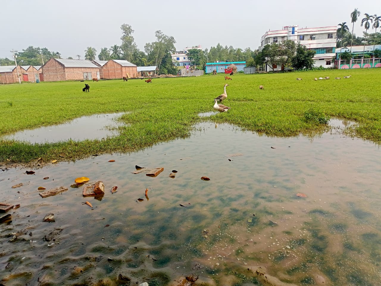 রায়গঞ্জে সামান্য বৃষ্টিতে বিদ্যালয় মাঠে জলাবদ্ধতা,ভোগান্তিতে শিক্ষার্থী ও এলাকাবাসী
