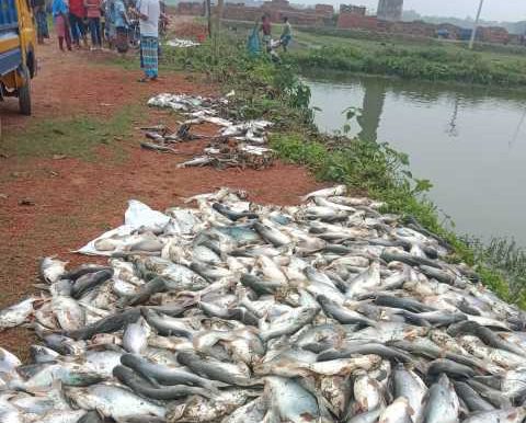 ত্রিশালে সাংবাদিকের পুকুরে বিষ প্রয়োগে মাছ নিধন