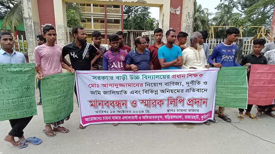 কুড়িগ্রামের রাজারহাটে প্রধান শিক্ষকের অপসারণ ও বিচারের দাবিতে মানববন্ধন