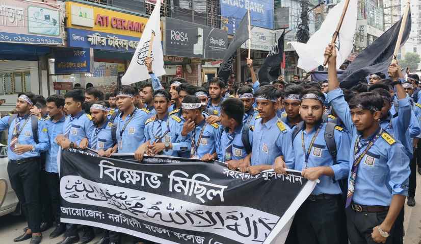 মহানবী (সা.) কে নিয়ে কটূক্তির প্রতিবাদে নরসিংদীতে বিক্ষোভ