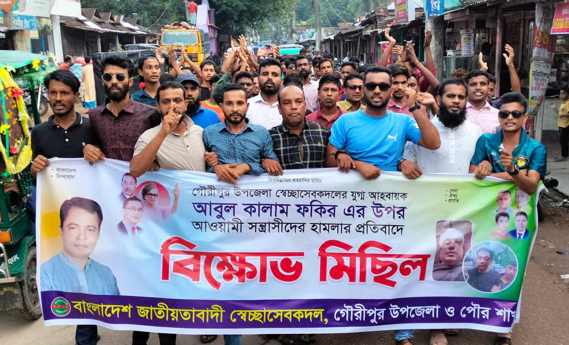গৌরীপুরে স্বেচ্ছাসেবক দল নেতা কালামের ওপর হামলার প্রতিবাদে বিক্ষোভ