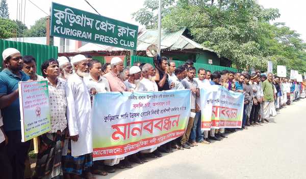 কুড়িগ্রামে পাউবোর নির্বাহী প্রকৌশলীর অপসারণ ও তিস্তা মহাপরিকল্পনা বাস্তবায়নের দাবিতে মানববন্ধন