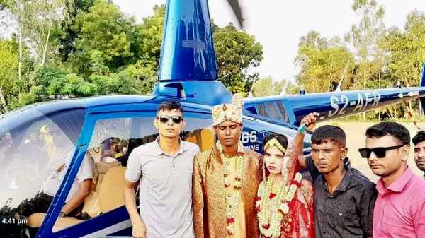 নিজের ইচ্ছা পূরণে হেলিকপ্টারে জামাই এনে মেয়ের বিয়ে দিলেন কৃষক !