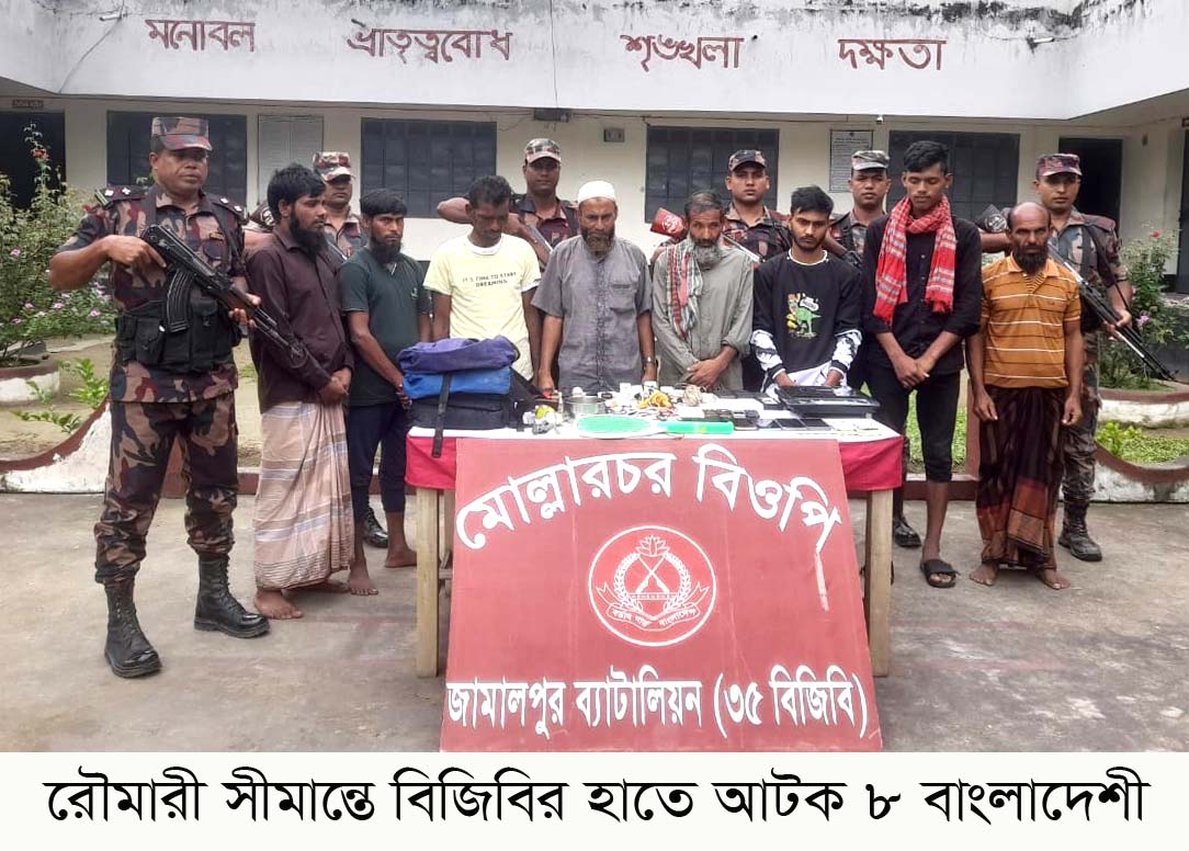 কুড়িগ্রামের রৌমারী সীমান্তে বিজিবির হাতে আটক ৮ বাংলাদেশি