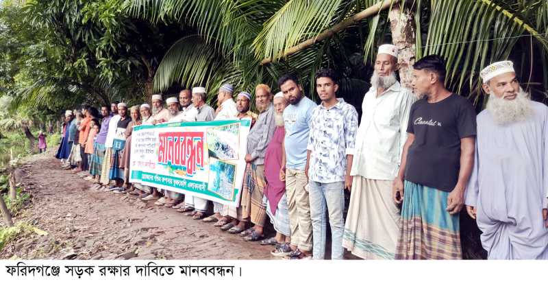 ফরিদগঞ্জে সড়ক রক্ষার দাবিতে মানববন্ধন