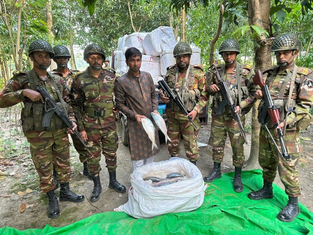 কসবায় ভারত পাচারকালে ১০৫০কেজিঁ ইলিশ সহ এক জন আটক করেছে সেনাবাহিনী