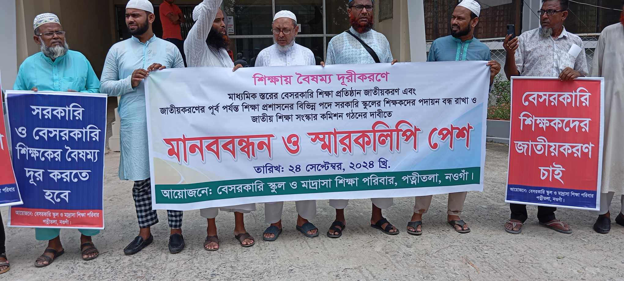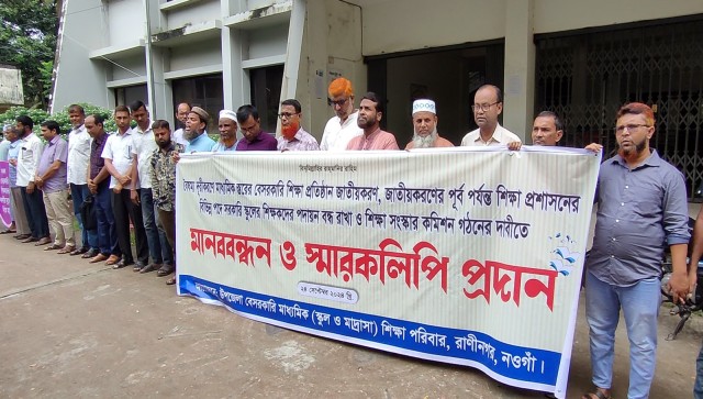 নওগাঁয় মাধ্যমিক শিক্ষা জাতীয়করণের দাবীতে মানববন্ধন