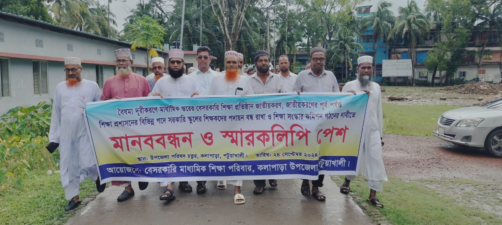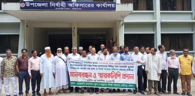 বরিশালের বানারীপাড়ায় মাধ্যমিক শিক্ষাকে বৈষম্যমুক্ত ও জাতীয়করণ করার দাবিতে মানববন্ধন ও স্মারকলিপি প্রদান