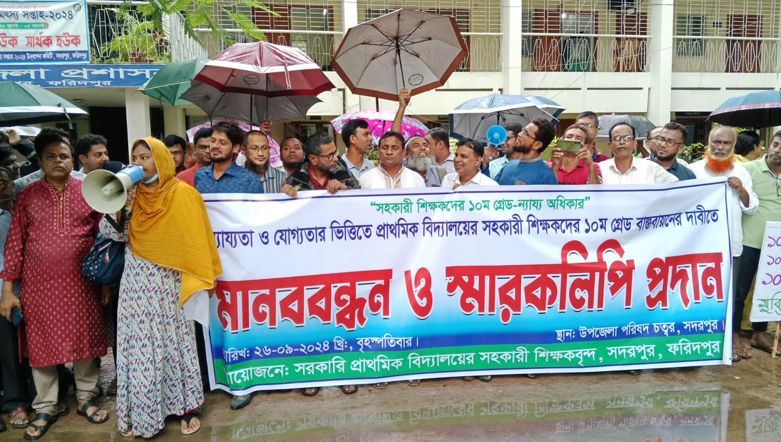 সদরপুরে প্রাথমিক সহকারী শিক্ষকদের দশম গ্রেডে বেতন ভাতা বাস্তবায়নের দাবিতে বৈরী আবহাওয়া উপেক্ষা করে মানববন্ধন