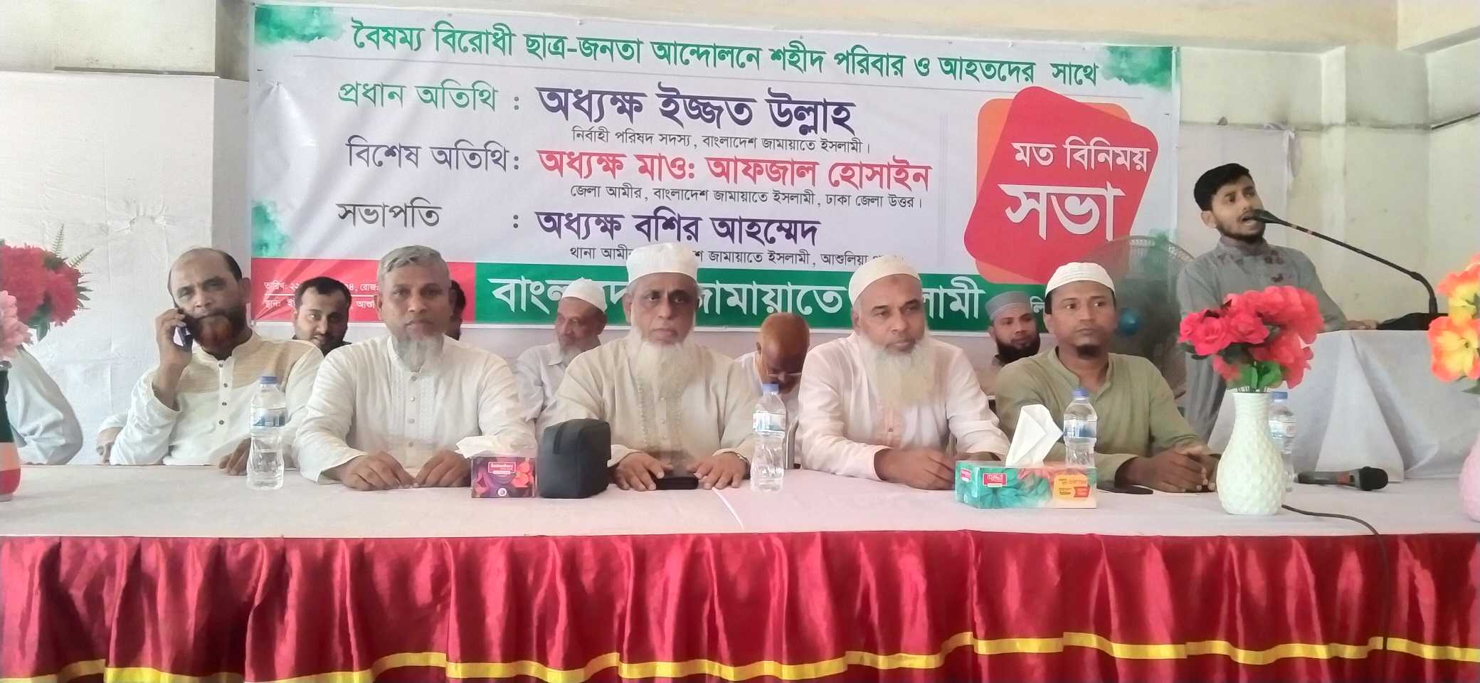 আশুলিয়ায় বৈষম্য বিরোধী ছাত্র-জনতার আন্দোলনে শহীদ পরিবার ও আহতদের সাথে জামায়াতের মতবিনিময় সভা অনুষ্ঠিত