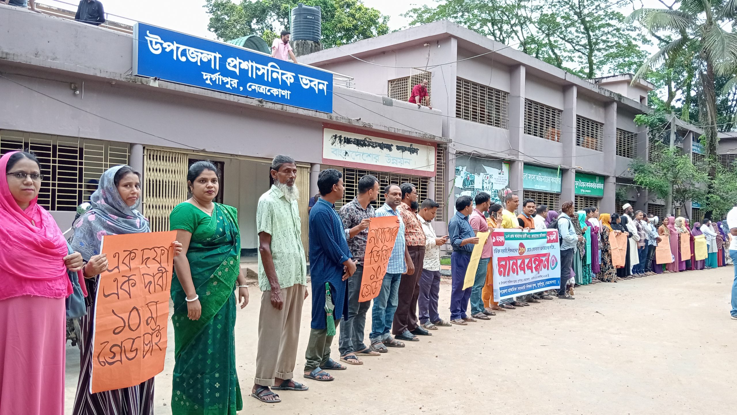 প্রাথমিক সহকারী শিক্ষকদের দশম গ্রেডে বেতন ভাতা বাস্তবায়নের দাবিতে দুর্গাপুরে মানববন্ধন