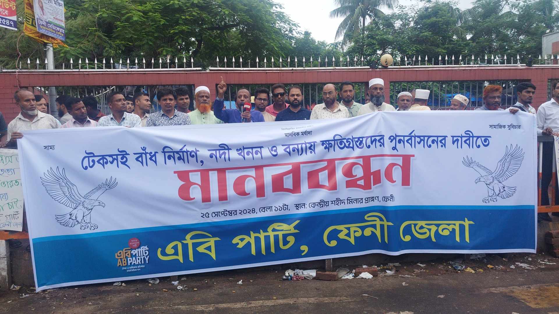 ফেনীতে টেকসই বাঁধ নির্মানের দাবীতে মানববন্ধন