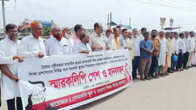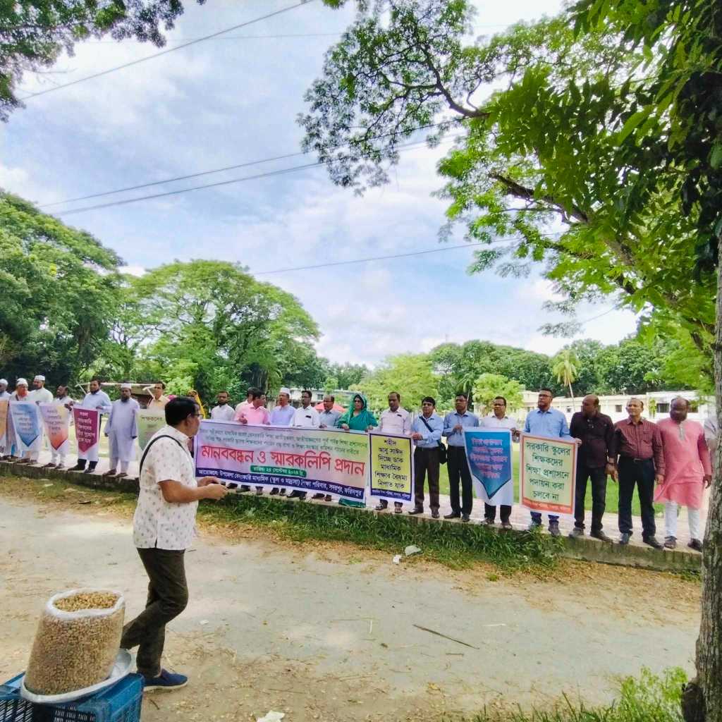 জাতীয়করণ ও বৈষম্য নিরসনের লক্ষ্যে মানববন্ধন ও স্মারকলিপি প্রদান