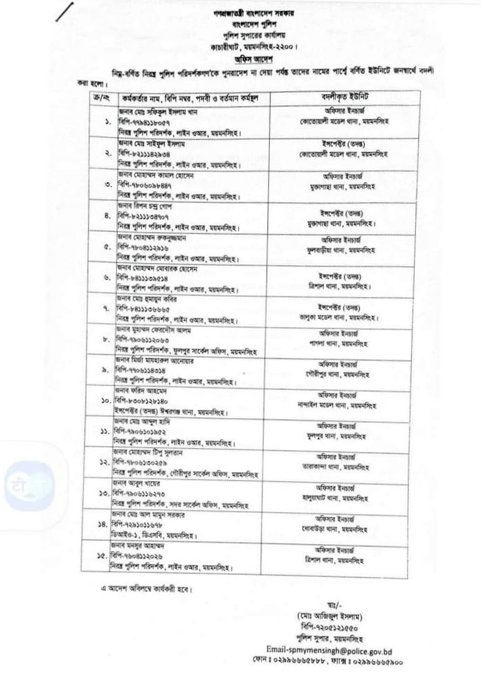 ময়মনসিংহের ১২ থানায় নতুন ওসি