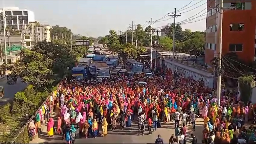 জয়দেবপুরের মন্ডল ইন্টিমেন্টস কারখানার শ্রমিকদের মহাসড়ক অবরোধ