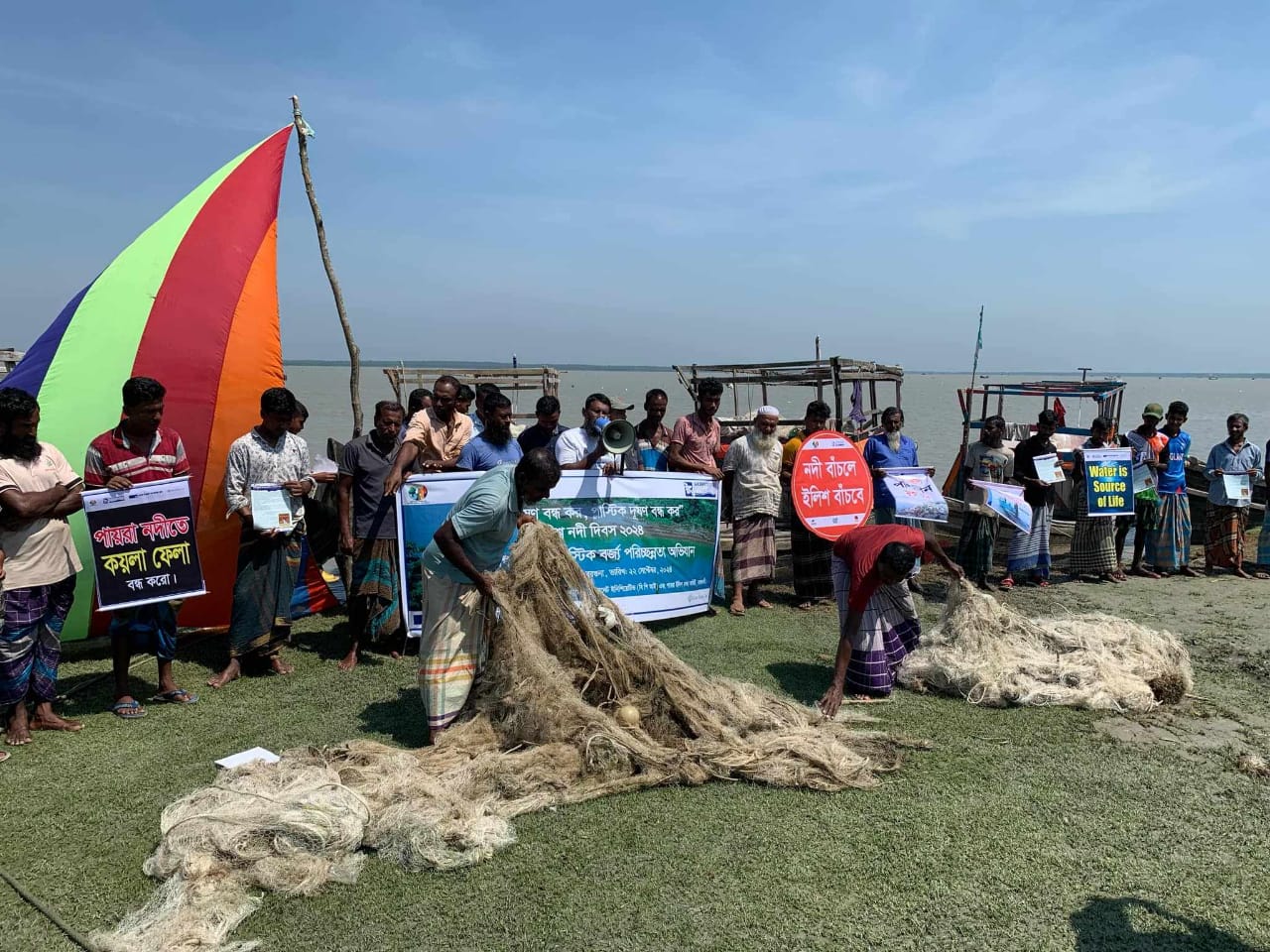 নদী দূষণরোধে জামালপুরে মানববন্ধন ও ব্রহ্মপুত্র নদ পরিচ্ছন্নতা অভিযান