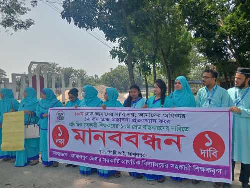 দশম গ্রেডের দাবীতে প্রাথমিক শিক্ষকদের মানববন্ধন