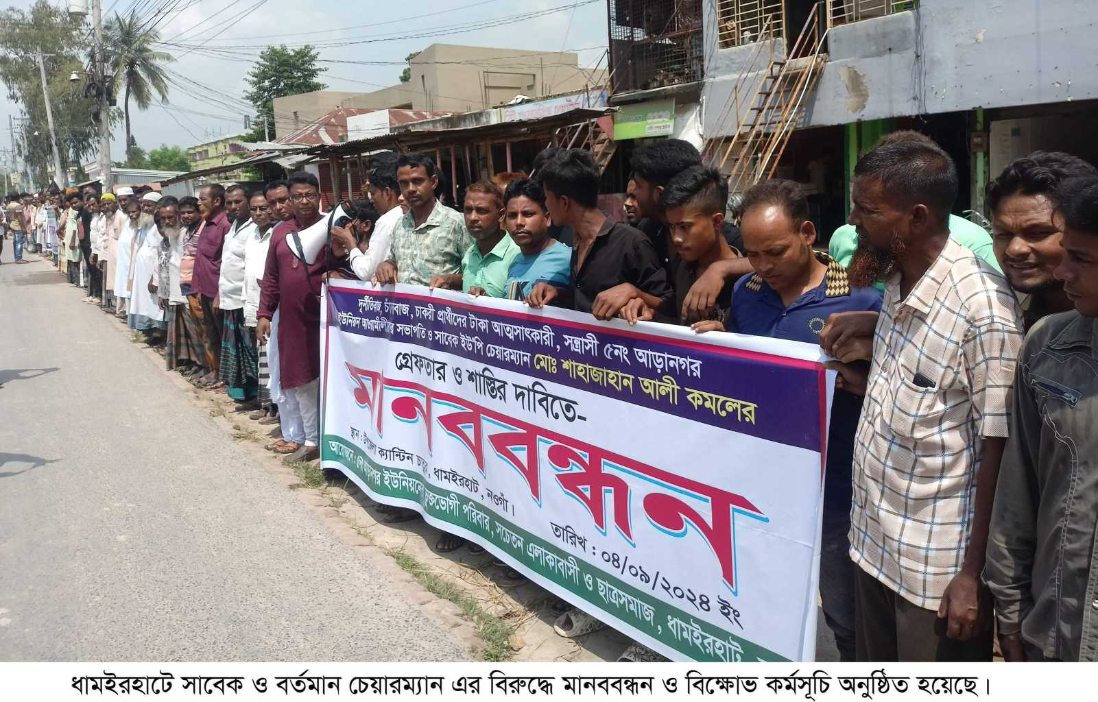 ধামইরহাটে সাবেক ও বর্তমান চেয়ারম্যান এর বিরুদ্ধে মানববন্ধন ও বিক্ষোভ কর্মসূচি অনুষ্ঠিত