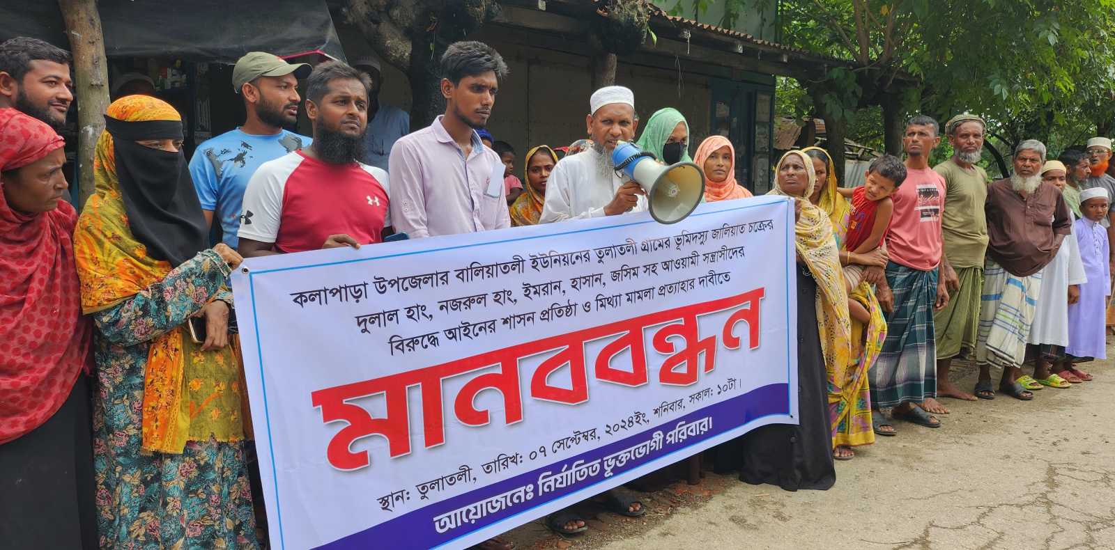 কলাপাড়ায় ভূমিদস্যু জালিয়াতি চক্রের বিরুদ্ধে মানববন্ধন