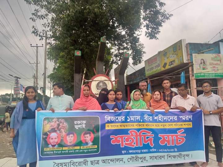 কিশোরগঞ্জে বৈষম্যবিরোধী ছাত্র আন্দোলনের শিক্ষার্থীদের শহীদি মার্চ পালন
