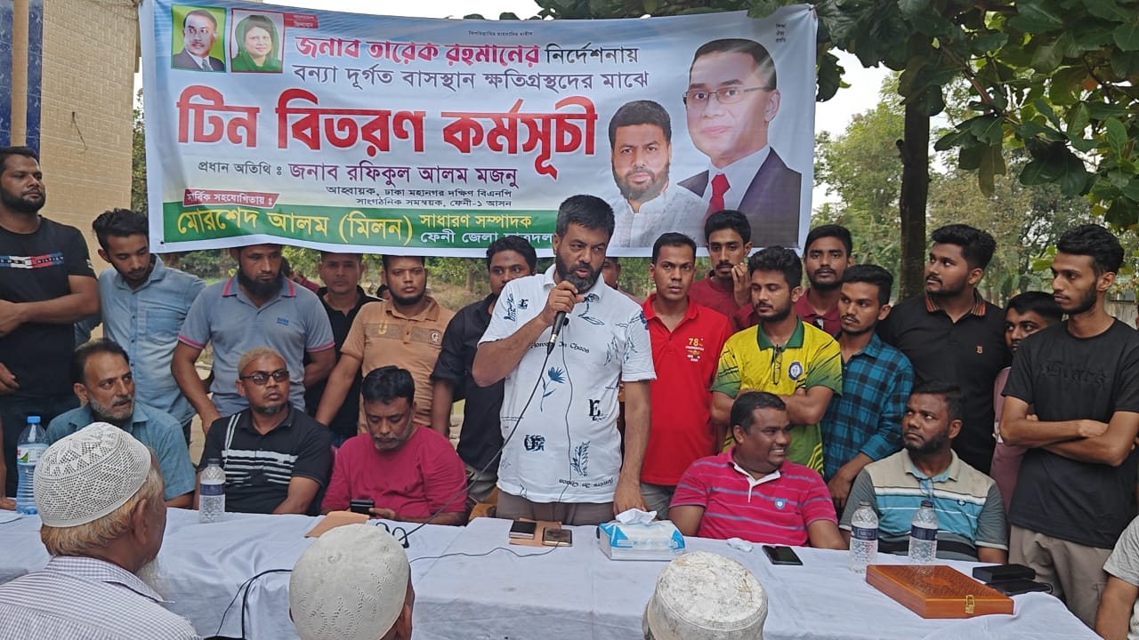 ফেনীতে বিএনপি নেতা মজনুর বন্যার্তদের মাঝে ঢেউটিন বিতরণ