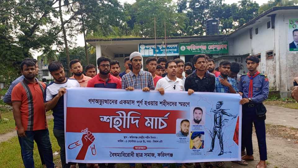 গণঅভ্যুত্থানের মাস পূর্তিতে ফরিদগঞ্জে বৈষম্য বিরোধী ছাত্রসমাজের মিছিল সমাবেশ