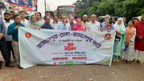 জামালপুর ঢাকা সড়কে আবার চালু হলো বিআরটিসি বাস