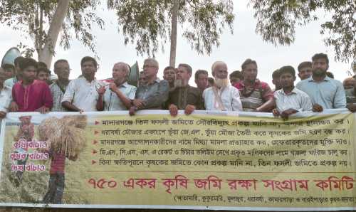 মাদারগঞ্জে ফসলি জমিতে সৌরবিদ্যুৎ প্রকল্প বাতিলের দাবিতে মানববন্ধন
