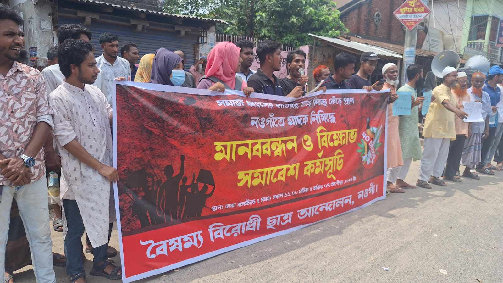 মাদকের বিরুদ্ধে নওগাঁর শিক্ষার্থীদের মানববন্ধন।