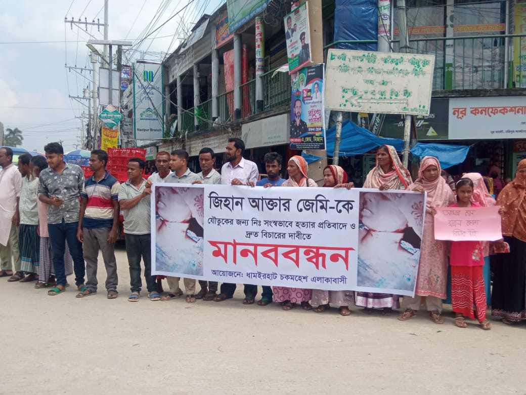 নওগাঁর পত্নীতলায় জেমি হত্যার বিচারের দাবিতে মানববন্ধন