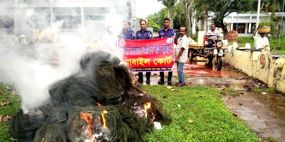 ভাঙ্গুড়ায় লক্ষাধিক টাকার নিষিদ্ধ জাল পুড়িয়ে ধ্বংস