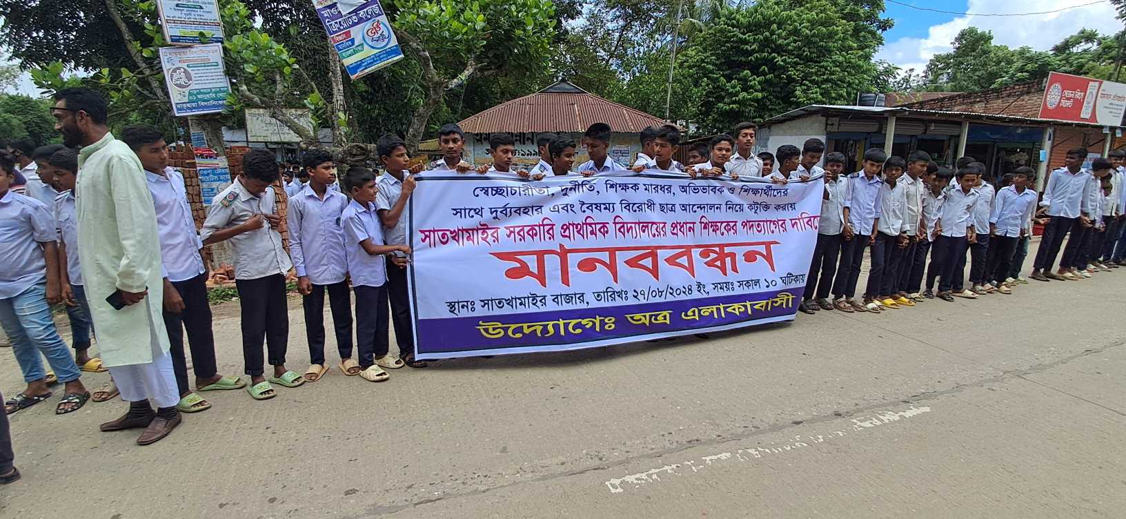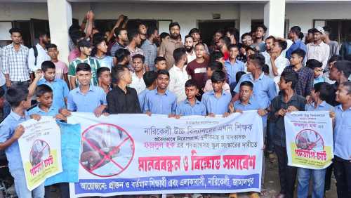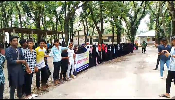 প্রধান শিক্ষকের পদত্যাগের দাবিতে শিক্ষার্থী মানববন্ধন ও সমাবেশ