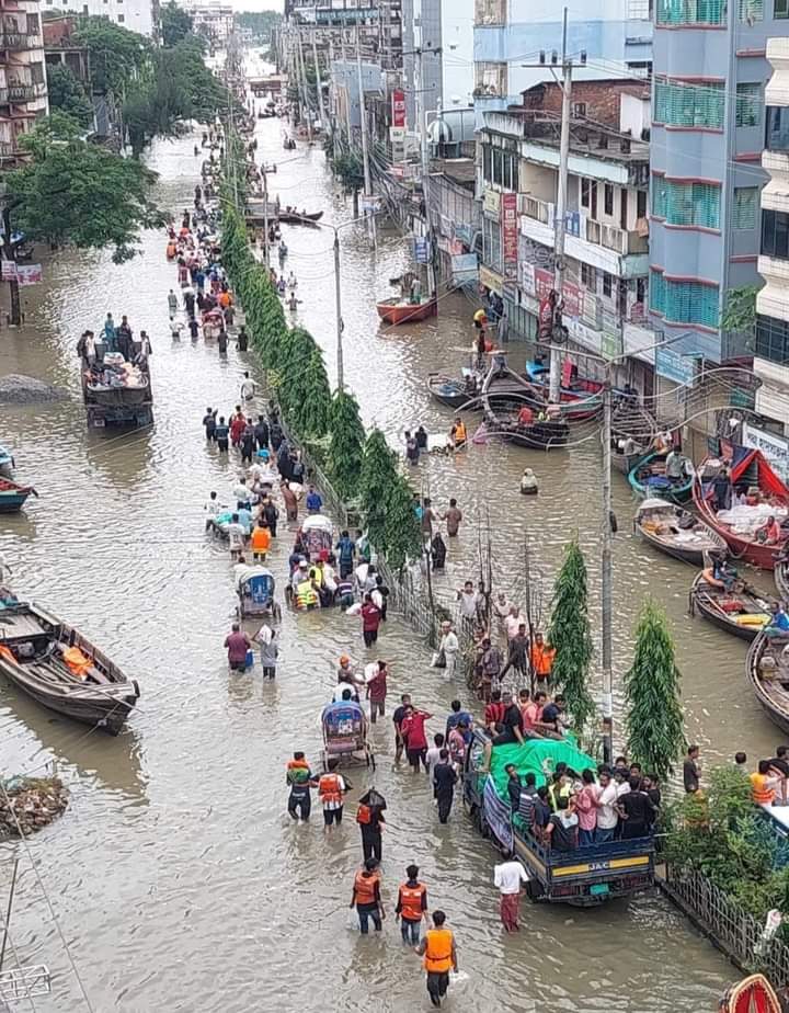 স্মরণকালের ভয়াবহ বন্যায় বানভাসিদের পাশে তরুণরা