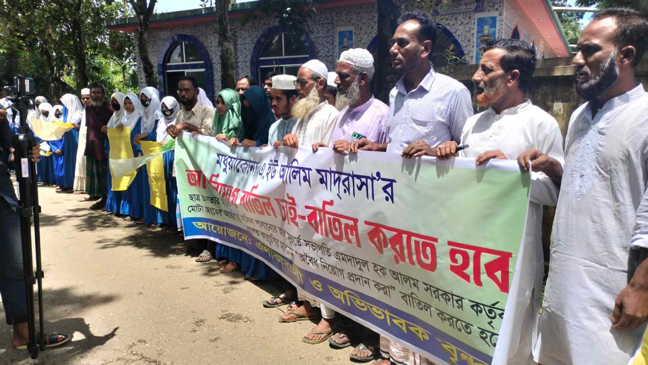 মাদরাসা সুপারের পদত্যাগের দাবিতে শিক্ষার্থীদের মানববন্ধন