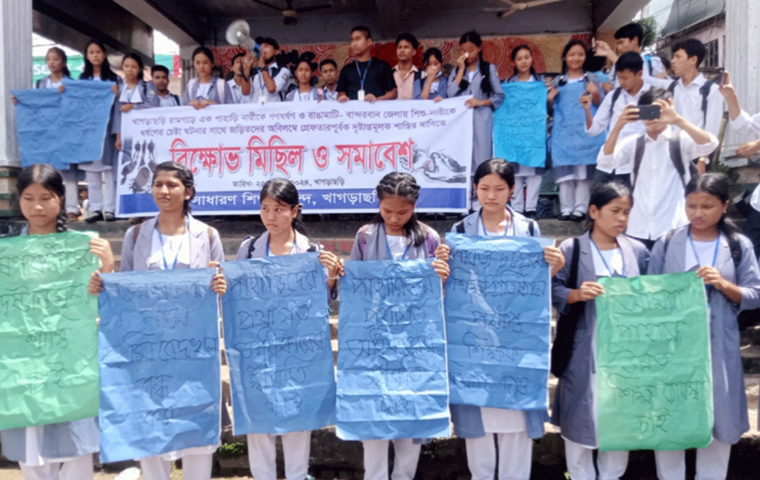 খাগড়াছড়িতে গণধর্ষণ ও ধর্ষণচেষ্টার প্রতিবাদে শিক্ষার্থীদের বিক্ষোভ সমাবেশ