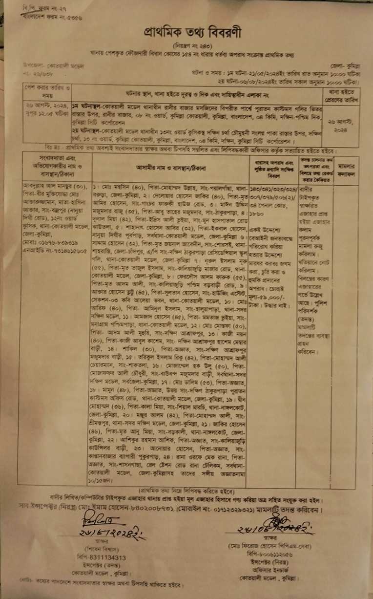 কুমিল্লা ছাত্র আন্দোলনের সংবাদ প্রকাশিত হওয়ায় সাংবাদিকের উপর সন্ত্রাসী হামলা,থানায় মামলা