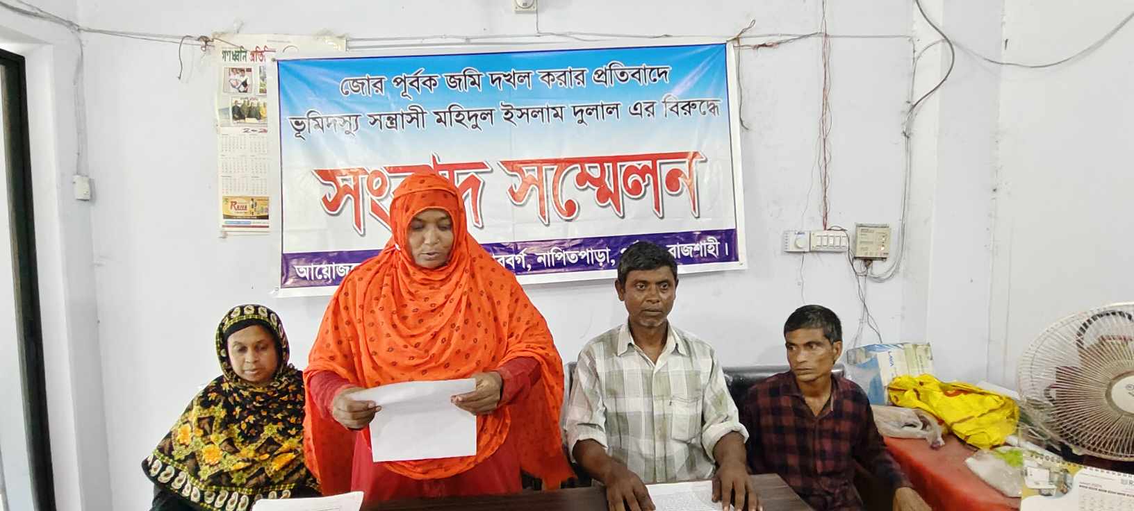 পুঠিয়ায় জমি দখলের প্রতিবাদে সংবাদ সম্মেলন
