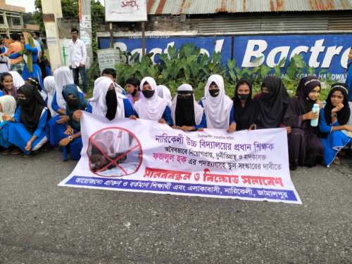 কুড়িগ্রামে ছাত্রীকে শ্লীলতাহানীর অভিযোগে শিক্ষকের বিরুদ্ধে বিক্ষোভ মিছিল