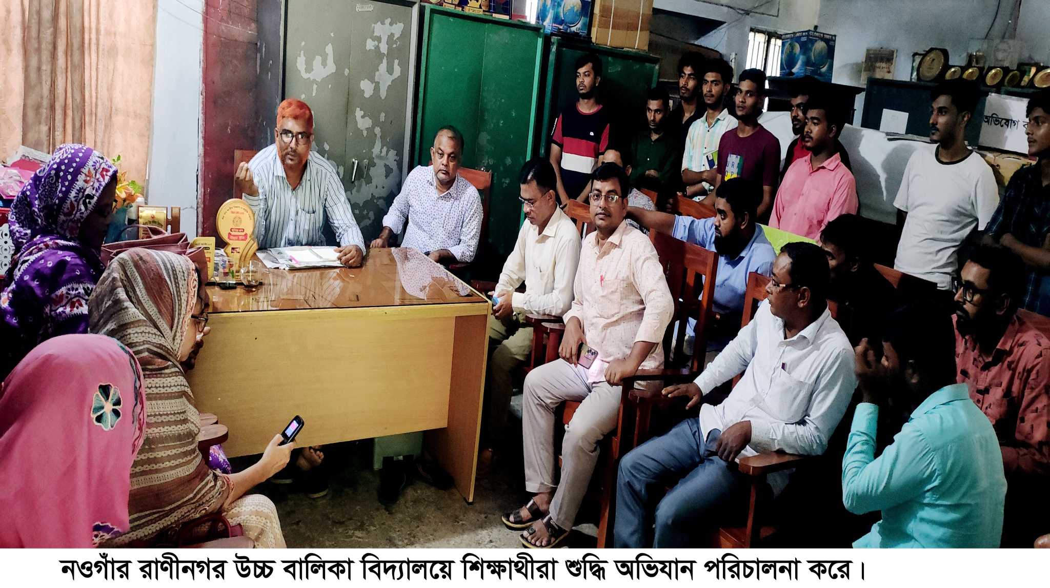 নওগাঁ রাণীনগরে বিদ্যালয়ে শিক্ষার্থীদের শুদ্ধি অভিযান।